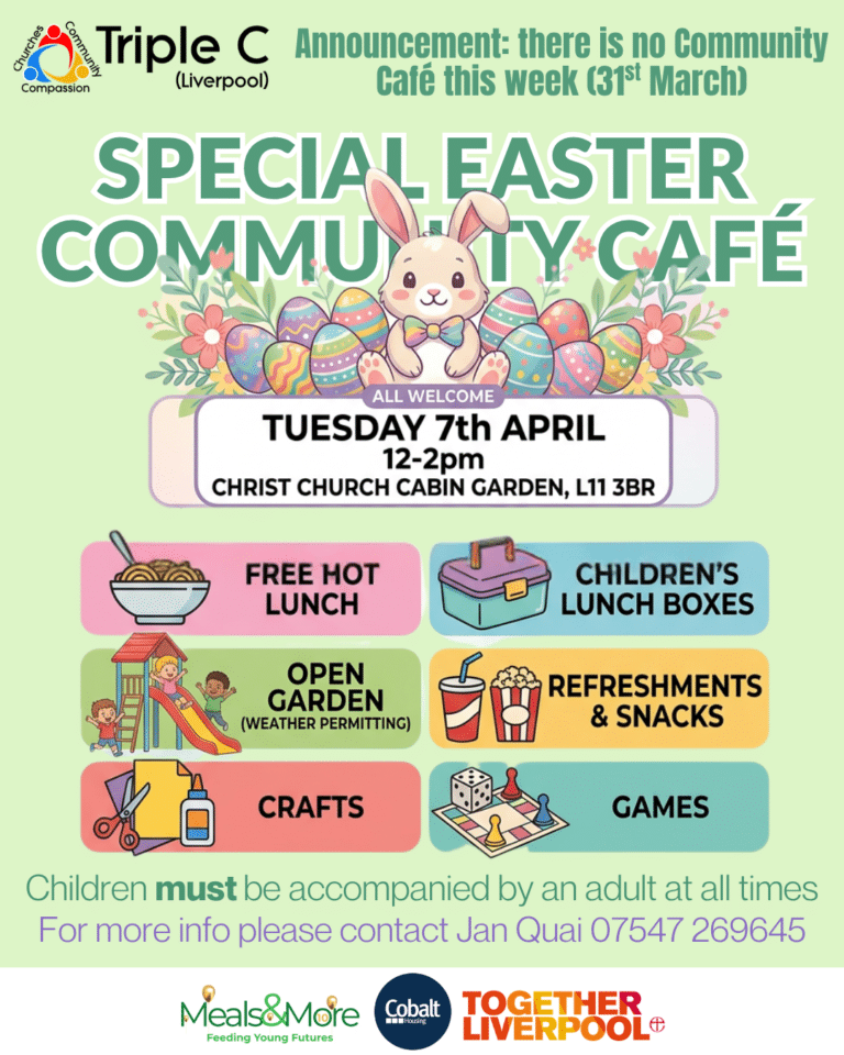 We are Triple C (Liverpool), a local charity that seeks to build community involvement in the running of groups and activities. A key priority is to contribute to improving life for local people experiencing hardship and the struggles of everyday life.